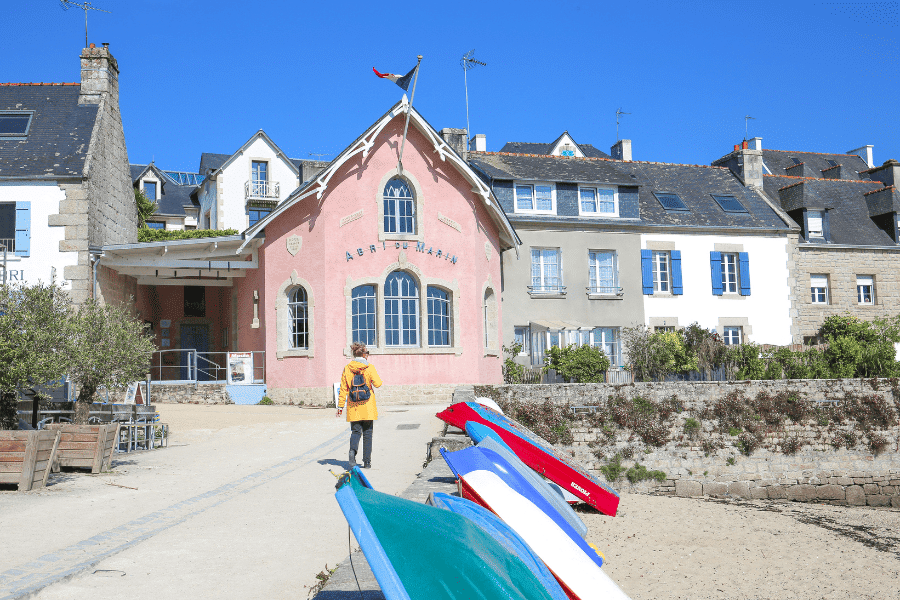 Zu Fuß vom Strand von Kermor erreichbar. Schmale, blumengeschmückte Gassen. Das Kino hält den Weltrekord für die kleinste Projektionskabine!